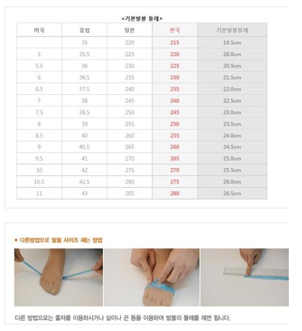 운동화는 위의 사이즈도 있지만.. 구두 같은 경우 아래의 사이즈도 있다.